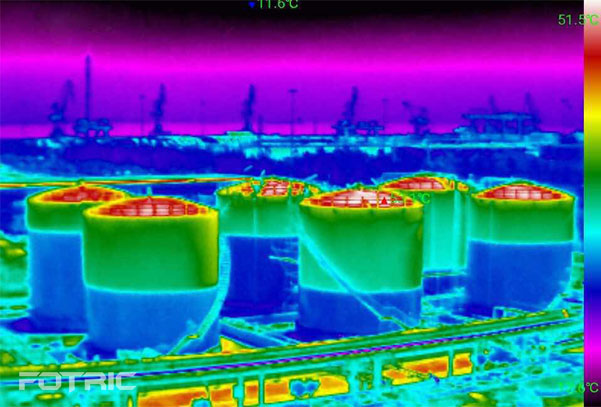 热像仪可以利用储油罐液体与气体的温差,直接在外表面拍摄出液位线,帮助设备维护人员及时发现有故障的液位罐,或对存储容量有明显偏差的罐体进行深入检测。